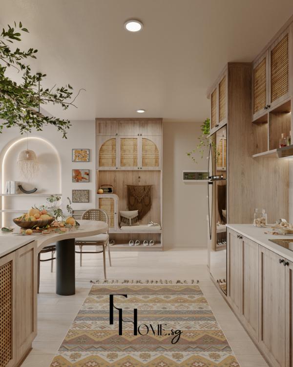 • Chế tác: Toàn bộ sản phẩm nội thất được thiết kế chi tiết và Sản xuất tại xưởng FHome.sg với quy trình kiểm soát chất lượng nghiêm ngặt, đảm bảo độ chính xác và đồng bộ hoàn thiện cao.
