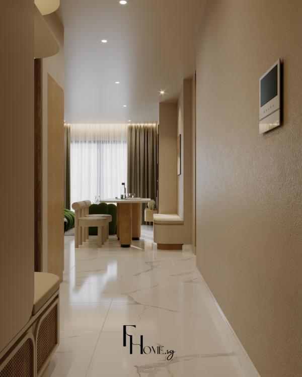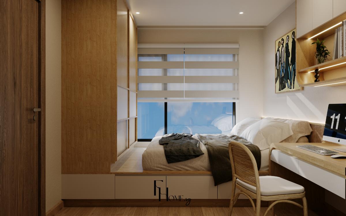 • Sản xuất: Các hạng mục nội thất như hệ tủ liên hoàn, giường tầng kết hợp khu vui chơi và vách trang trí tạo hình vòm được đo đạc, gia công chính xác và kiểm soát chất lượng nghiêm ngặt trực tiếp tại xưởng FHome.sg.