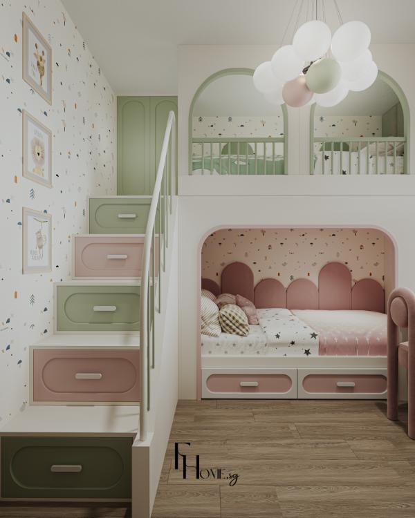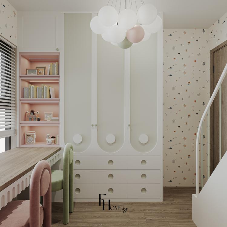 • Giải pháp Công năng: Tối ưu không gian đứng bằng Hệ tủ kịch trần tích hợp, đặc biệt trong phòng ngủ và khu vực lối vào (tủ giày/tủ trang trí). Tích hợp giường tầng/gác xép cho phòng trẻ em để giải phóng diện tích sàn.
