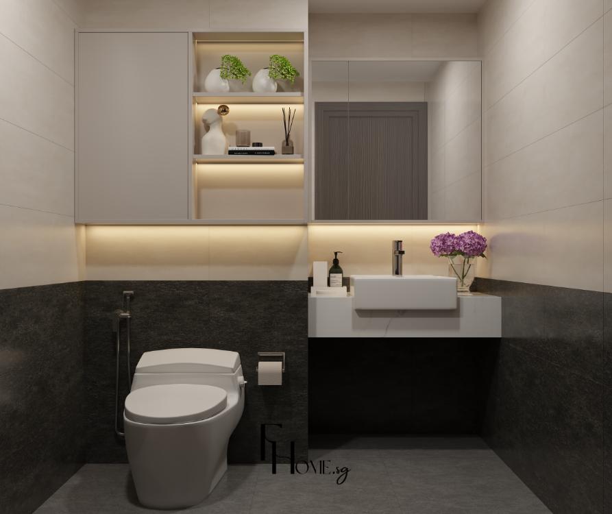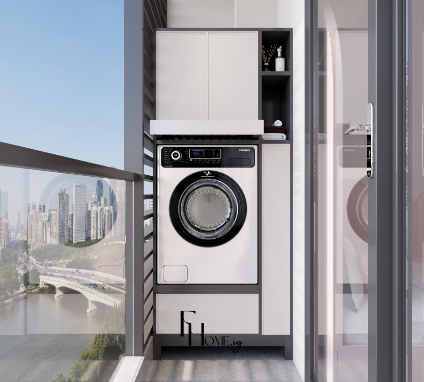- Xử lý kỹ thuật: Quy hoạch khu vực Ban công thành không gian giặt sấy chuyên biệt với hệ tủ chống nước, giải phóng không gian phòng vệ sinh.