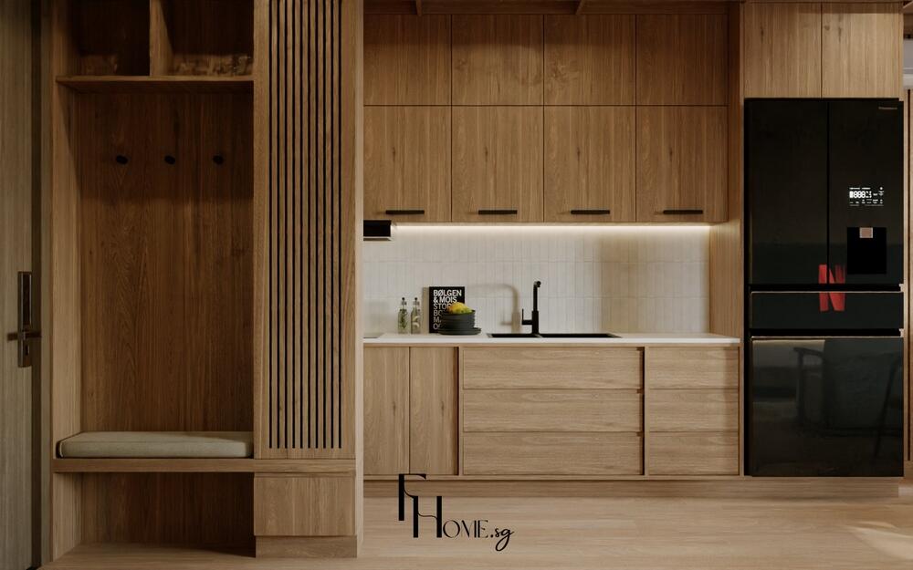 - Chất lượng: Các chi tiết nội thất (cánh tủ, hộc kéo) sử dụng phụ kiện cao cấp, đảm bảo tính thẩm mỹ tối giản và độ bền vượt trội. Quá trình sản xuất được kiểm soát nghiêm ngặt tại xưởng FHome.sg.