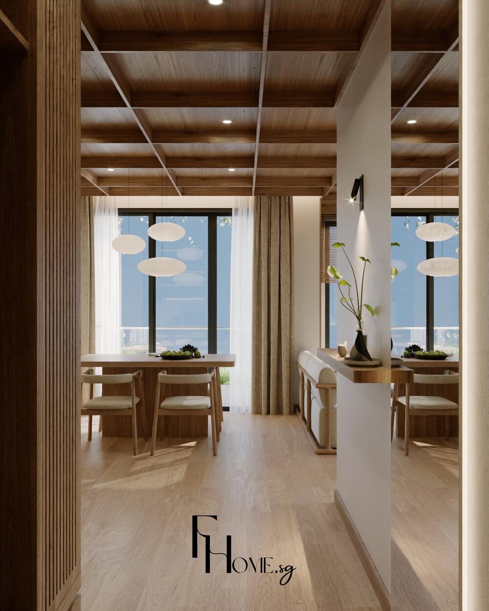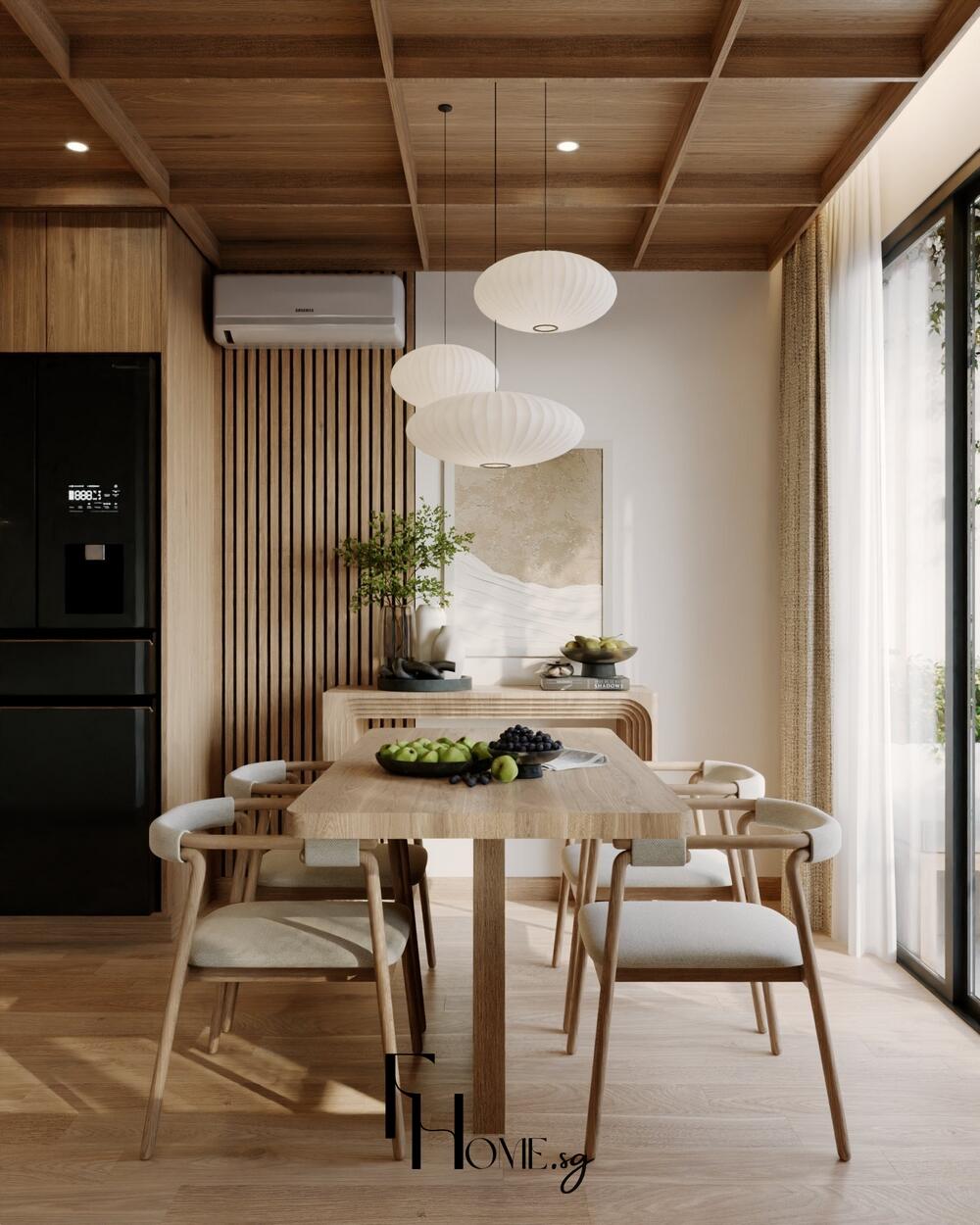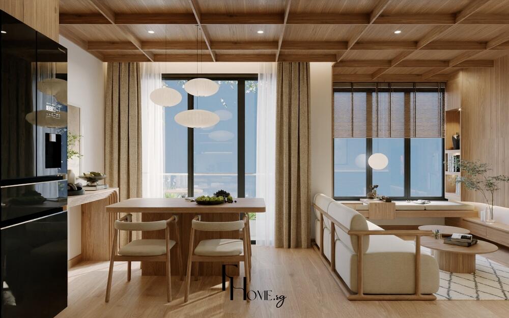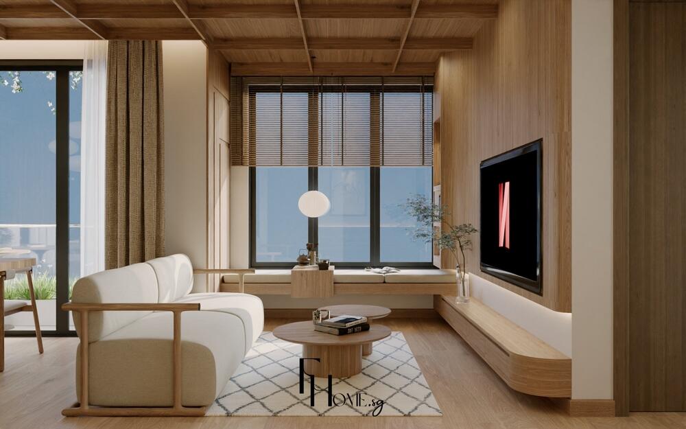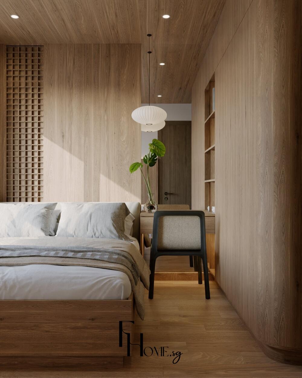 - Thẩm mỹ Japandi: Lựa chọn hệ vật liệu vân gỗ sáng ấm và ánh sáng vàng dịu để tạo bầu không khí ấm cúng và tĩnh tại, mang đến không gian đậm tính thiên.
