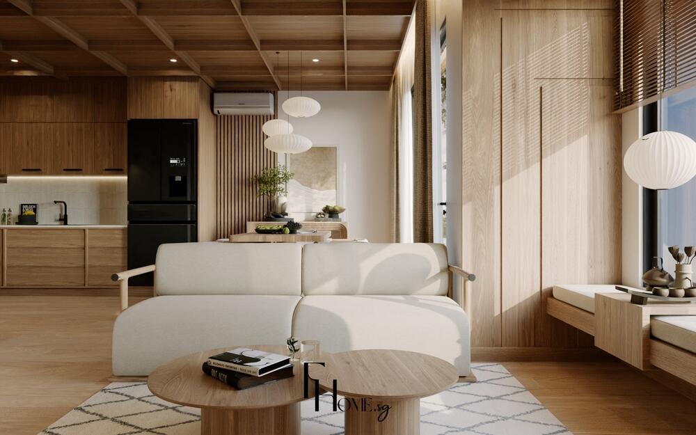 - Thách thức: Căn hộ chung cư 70m2 yêu cầu tích hợp đồng thời sự tối giản, khoáng đạt của phong cách Japandi và nhu cầu lưu trữ lớn của gia đình trẻ.